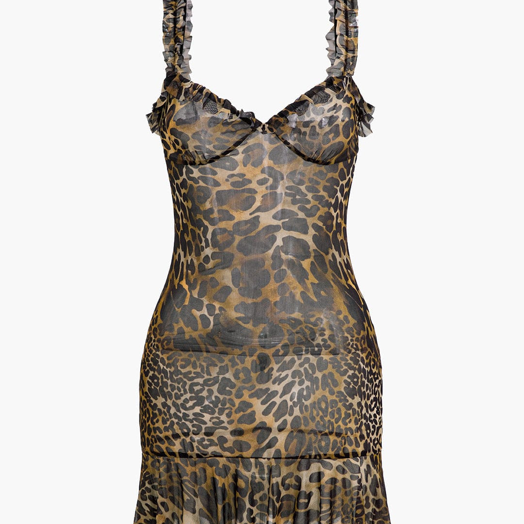 Savanna | Wild Leopard Mini-jurk met Ruches – Verleidelijke Dierenprint