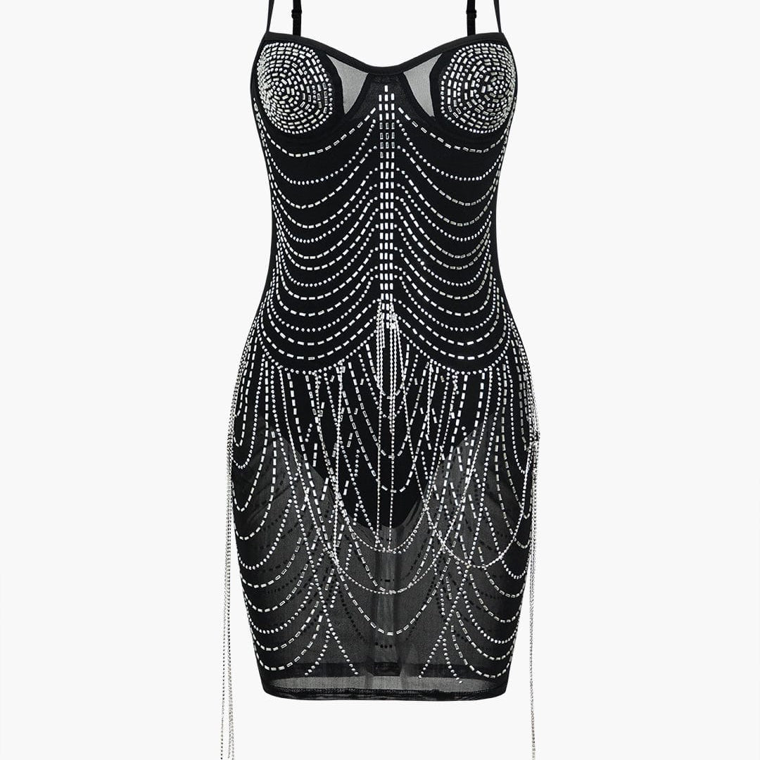 Celeste | Strass-versierd Mesh-Minikleed – Glinsterende glamour voor onvergetelijke nachten