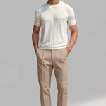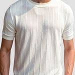 Dit zware O-hals T-shirt is perfect voor verschillende gelegenheden, van ontspannen weekenden tot casual werkdagen. De klassieke crew neck en regular fit bieden een tijdloze uitstraling, terwijl de gemiddelde stretch zorgt voor comfort gedurende de dag. Met zijn effen kleur en subtiele gestreepte ontwerp, mengt dit T-shirt moeiteloos oude geld elegantie met hedendaagse stijl.