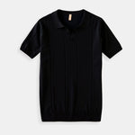 Een stijlvol poloshirt met nostalgische flair – dit fijngebreide shirt overtuigt met zijn klassieke snit en de zachte, hoogwaardige feel. De subtiele verticale structuur geeft het shirt een elegante uitstraling, terwijl de geribbelde mouwen en de zoom zorgen voor een perfecte pasvorm. Ideaal voor casual zomerlooks of als slimme metgezel voor stijlbewuste mannen.