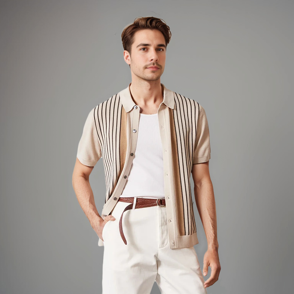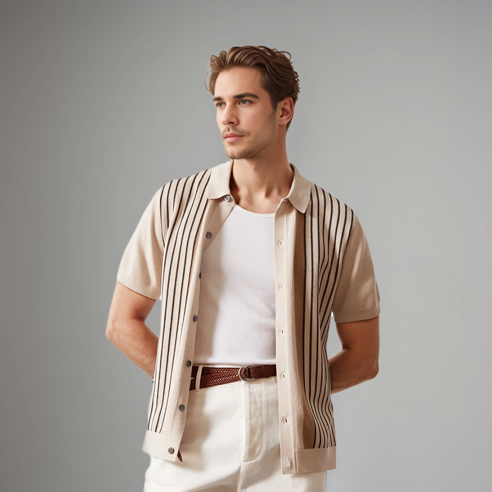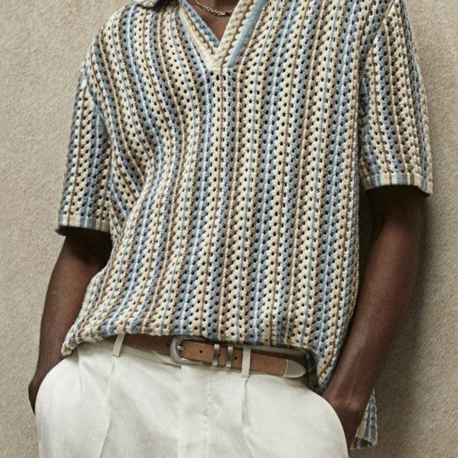 Gestreept Gebreid Poloshirt | Maritieme Elegantie met een Moderne Touch