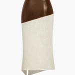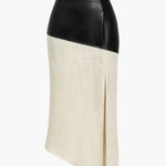 Danica | Elegante Midirok met asymmetrisch Kunstleer en Linnen-Design
