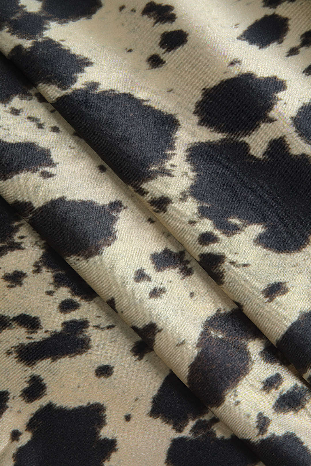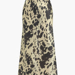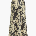 Erna | Vloeiende Midirok van Satijn met Hoge Taille en Opvallend Koeienvachtpatroon