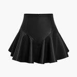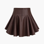Marigold | Speelse kunstleren skaterrok met hoge taille en uitlopende zoom