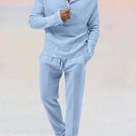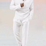Dit heren loungepak is de ultieme combinatie van comfort en stijl. De luchtige en zachte stof zorgt ervoor dat je je de hele dag prettig voelt, terwijl het moderne ontwerp je een trendy uitstraling geeft.