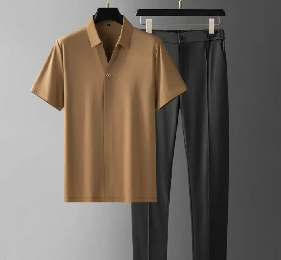 Stijlvolle Luxe Heren Set – Polo & Broek voor een Verfijnde Look