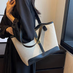 Amelia | Canvas Schouderhandtas met Lederen Details & Draaisluiting