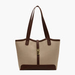 De Amelia Tas verenigt klassieke vormgeving met hoogwaardige materialen voor een stijlvolle alledaagse metgezel. De beige canvas wordt aangevuld met luxe bruine kunstlederen accenten en een gouden draaisluiting, die niet alleen functioneel, maar ook visueel een hoogtepunt is. Met haar royale formaat en stevige hengsels is de tas ideaal voor kantoor, winkelen of weekenduitstapjes.