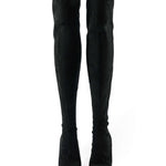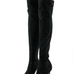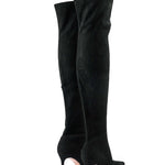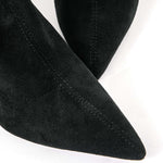 Deze zwarte overknee-boots van zacht suède combineren tijdloze elegantie met moderne chic. De puntige snit en de smalle hak verlengen optisch het been en geven een vrouwelijke silhouet. Perfect voor elegante looks of stijlvolle herfst- en winteroutfits.