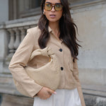 Deze moderne hobo-tas met gevlochten ontwerp en uniek knoopdetail aan het hengsel is een echte blikvanger. Het verenigt stijlvolle esthetiek met functionaliteit en is ideaal voor vrouwen die een uitzonderlijk accessoire zoeken.