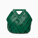 Onze gevlochten handtas - een uniek en stijlvol accessoire! Deze handtas van hoogwaardig vegan leer heeft een opvallend gevlochten ontwerp en een elegante driehoekige handgreep. Perfect voor iedereen die op zoek is naar een modieuze en praktische tas voor elke gelegenheid.