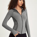 De Elisa Naadloze Sportjacke combineert modern design met hoge functionaliteit. Het figuuraccentuerende, ademende materiaal zorgt voor een perfecte pasvorm en maximaal comfort. Door het doordachte mesh-design aan de zijkanten wordt de luchtcirculatie verbeterd, terwijl de doorlopende rits veelzijdige stylingopties mogelijk maakt. Ideaal voor workouts, buitenactiviteiten of als trendy vrijetijdsjack.