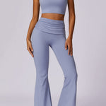 Liana | Lichtblauwe High-Waist Flare Leggings met Vouwband