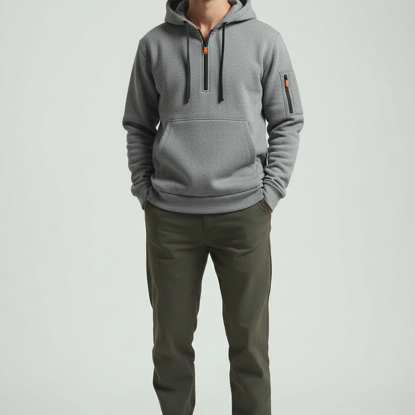 Heren Half Zip Hoodie – Comfortabele Urban Pullover met Zakken