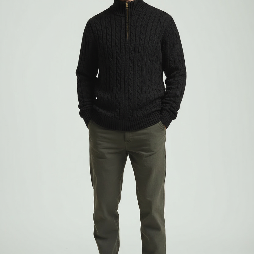 Heren Zip-up Trui – Halve Rits Pullover met Ribstructuur & Comfortabele Pasvorm