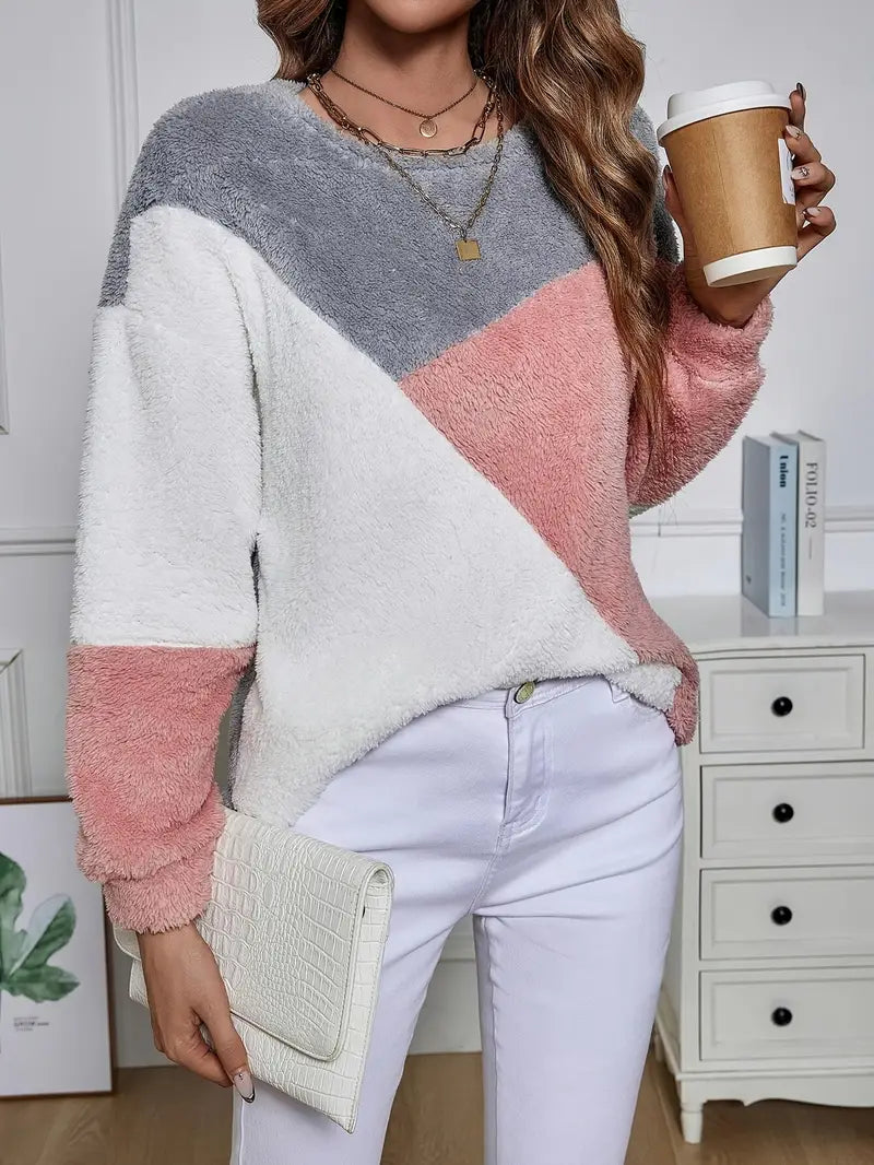 Stijlvolle en Warme Dames Trui met Uniek Kleurblokdesign