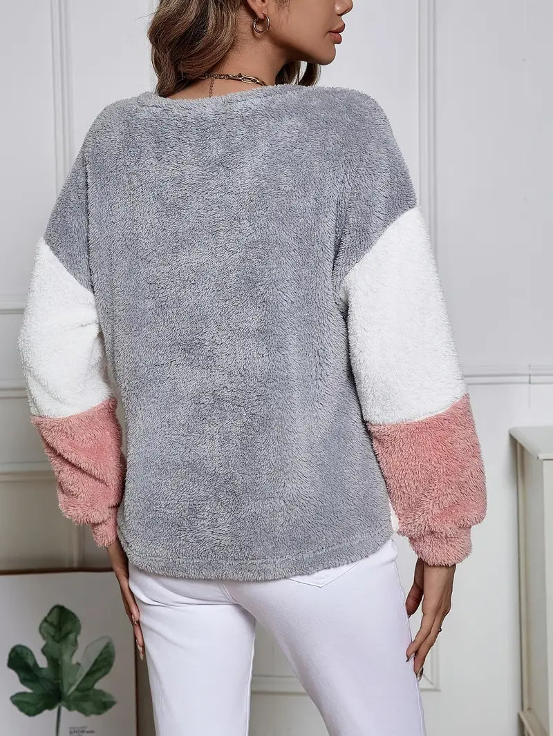 Deze dames trui combineert stijl en comfort op een unieke manier. Het trendy kleurblokdesign in grijs, roze en wit geeft een speelse maar verfijnde uitstraling. De zachte stof zorgt voor ultiem draagcomfort.