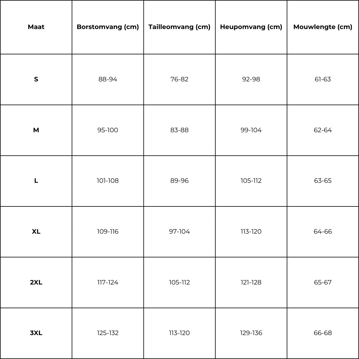 Maattabel (CM)