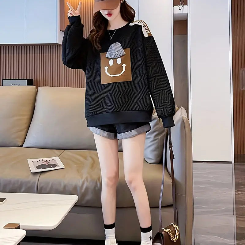 Bobbie™ Dames Sweater met 3D Cartoonprint en Schouderdetails