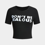 Braelyn | Zwart Korte Mouwen Cropped T-Shirt met "Wees Niet Jalours"-Print
