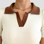 Lässige Polo Kleur Blok Geribbelde Kraag Gebreid Top