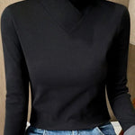 Het unieke kraagontwerp geeft deze basic top een modieuze twist, waardoor je zonder moeite een stijlvolle indruk maakt. Ideaal voor vrouwen die houden van eenvoud met een opvallend detail.