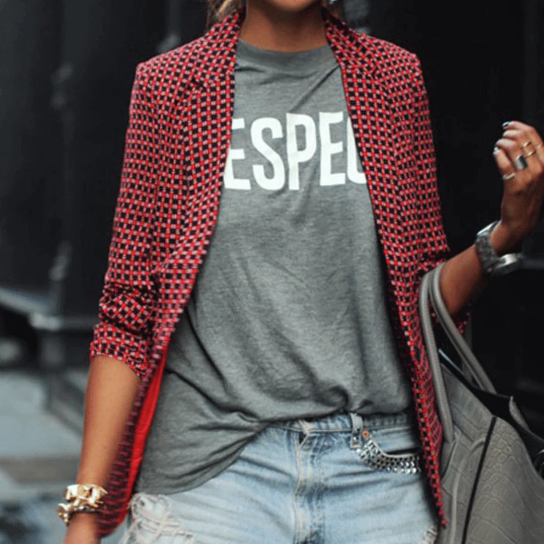 Dames Blazer met Geometrische Print – Trendy & Gedurfd!