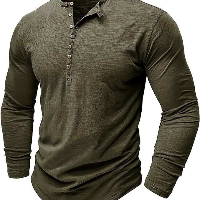 Herman Koch | Heren langarm Henley-shirt van geribde katoenmix