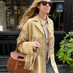 De Dakota Franjejas is het perfecte statement-piece voor iedereen die houdt van de trendy Westerse en Boho-stijl. Gemaakt van hoogwaardig suède imitaties, combineert het een casual pasvorm met stijlvolle franje-details op de mouwen en rug. Ideaal voor de herfst of als een stijlvol laagje – deze jas geeft elke outfit een coole, ontspannen touch.