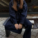 • Tijdloze elegantie: De losse snit met wijde mouwen en strakke naden maakt de set veelzijdig combineerbaar.