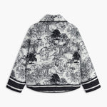 Deze lichte zomerjack verenigt stijlvolle elegantie met modern comfort. De hoogwaardige stof zorgt voor een aangenaam draaggevoel, terwijl het unieke zwart-witte patroon met kunstzinnige details elke outfit een bijzondere touch geeft.