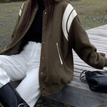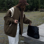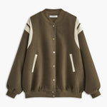 Molly | Oversized college-jack met contrastmouwen en drukknopen