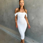 Chloë | Elegante off-shoulder witte Bodycon midi-jurk met ruches